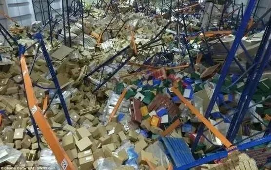 此外,2016年,英國Hinstock鎮(zhèn)的Haulage食品公司倉庫發(fā)生貨架倒塌事故,上萬噸食品橫梁式貨架瞬間倒塌。經過消防部門9個小時營救,所幸沒有人員死亡。