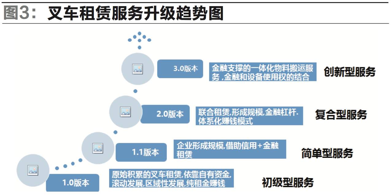 (3)在模式方面,金融進(jìn)入叉車后市場(chǎng)將改變目前叉車租賃的運(yùn)營模式,促使叉車所有權(quán)和使用權(quán)分離,使共享經(jīng)濟(jì)成為可能;